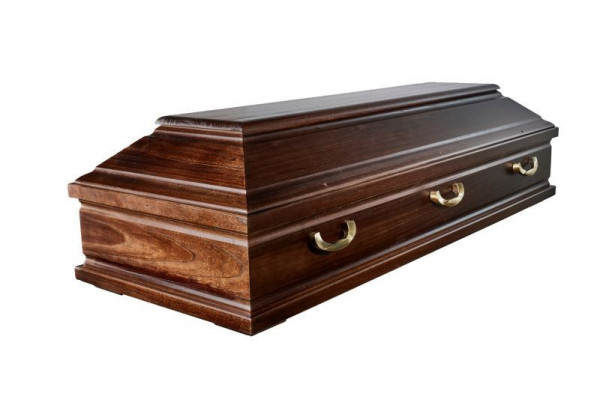 Kvalitní celodřevěná rakev v exkluzivním designu tropického dřeva wenge. Vhodná do kremace a do hrobu. Není vhodná do hrobek.