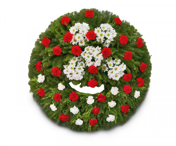 Tento plný věnec je tvořen dvěma druhy květů. Vrchní díl tvoří květy karafiátů a chryzantém. Spodní díl je tvořen květy karafiátů. Věnec je velice bohatý, elegantní a hodí se jak k položení před rakev, tak na samotný hrob.