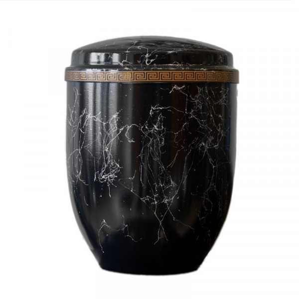 Kovový temně šedý obal na urnu s antickou linkou a stříbrným žíháním.
